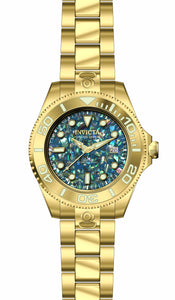 INVICTA Pro Diver Men 47mm Stainless Steel Gold Blue dial NH35A Automatic , Band Material: Stainless Steel, Band Tone: Gold, Band Size [mm]: 22, Band Length [mm]: 205, Buckle Type: Fold over safety , Crown Type : Screw Down, Case Material : Stainless Steel, Case Tone : Gold, Case Size (mm) : 47, Case Back : Exhibition, Material of Hands : Metal, Color of Hands : Gold,Luminous, Crystal Type : Mineral, Bezel Material : Stainless Steel, Dial Material : Mother of Pearl,Abalone, Dial Color : Blue, Dial Pattern : None .Purchasing these parts and having a non-authorized repair center open your watch voids all manufacturing warranties. Invicta cannot guarantee the quality standards of an altered timepiece, the standard 3-year limited warranty on Invicta timepieces shall be invalid if the timepiece is serviced at any time by an unauthorized repair center. This includes battery replacements, which must be done at an Invicta authorized repair center in order to maintain the eligibility of the warranty. Please follow the link below to learn more about Invicta's warranty.https://cdn.invictawatch.com/www/files/invicta-warranty-2018.pdf