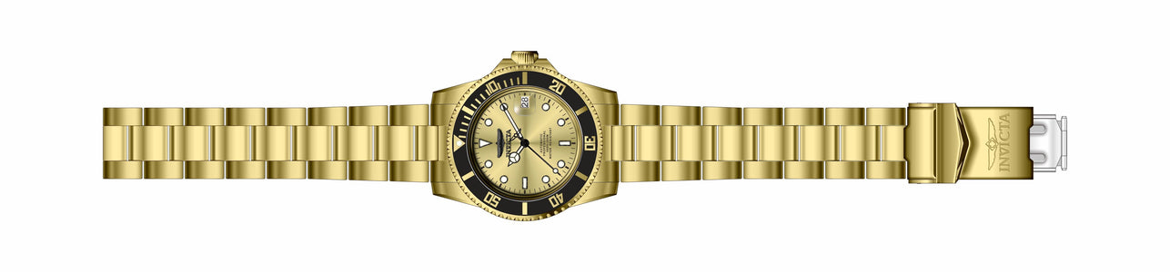INVICTA Pro Diver Men 40mm Stainless Steel Gold Gold dial NH35A Automatic , Band Material: Stainless Steel, Band Tone: Gold, Band Size [mm]: 20, Band Length [mm]: 200, Buckle Type: Fold over safety , Crown Type : Screw Down, Case Material : Stainless Steel, Case Tone : Gold, Case Size (mm) : 40, Case Back : Exhibition, Material of Hands : Metal, Color of Hands : Black,Luminous, Crystal Type : Mineral, Bezel Material : Stainless Steel, Dial Material : Metal, Dial Color : Gold, Dial Pattern : Sun-ray Finish .Purchasing these parts and having a non-authorized repair center open your watch voids all manufacturing warranties. Invicta cannot guarantee the quality standards of an altered timepiece, the standard 3-year limited warranty on Invicta timepieces shall be invalid if the timepiece is serviced at any time by an unauthorized repair center. This includes battery replacements, which must be done at an Invicta authorized repair center in order to maintain the eligibility of the warranty. Please follow the link below to learn more about Invicta's warranty.https://cdn.invictawatch.com/www/files/invicta-warranty-2018.pdf