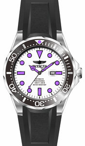 INVICTA Pro Diver Men 60mm Stainless Steel Steel White dial NH35A Automatic , Band Material: Silicone, Band Tone: Black, Band Size [mm]: 28, Band Length [mm]: 235, Buckle Type: Buckle , Crown Type : Screw Down, Case Material : Stainless Steel, Case Tone : Steel, Case Size (mm) : 60, Case Back : Exhibition, Material of Hands : Metal, Color of Hands : Black,Luminous, Crystal Type : Mineral, Bezel Material : Stainless Steel, Dial Material : Metal, Dial Color : White, Dial Pattern : None .Purchasing these parts and having a non-authorized repair center open your watch voids all manufacturing warranties. Invicta cannot guarantee the quality standards of an altered timepiece, the standard 3-year limited warranty on Invicta timepieces shall be invalid if the timepiece is serviced at any time by an unauthorized repair center. This includes battery replacements, which must be done at an Invicta authorized repair center in order to maintain the eligibility of the warranty. Please follow the link below to learn more about Invicta's warranty.https://cdn.invictawatch.com/www/files/invicta-warranty-2018.pdf
