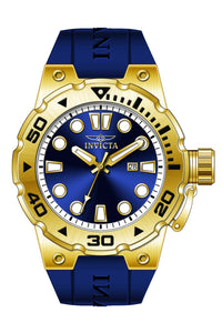 INVICTA Pro Diver Men 51mm Stainless Steel Gold Blue dial PC32 Quartz , Band Material: Silicone, Band Tone: Blue, Band Size [mm]: 32, Band Length [mm]: 215, Buckle Type: Buckle , Crown Type : Screw Down, Case Material : Stainless Steel, Case Tone : Gold, Case Size (mm) : 51, Case Back : Solid, Material of Hands : Metal, Color of Hands : White,Gold, Crystal Type : Flame Fusion, Bezel Material : Stainless Steel, Dial Material : Metal, Dial Color : Blue, Dial Pattern : Sun-ray Finish .Purchasing these parts and having a non-authorized repair center open your watch voids all manufacturing warranties. Invicta cannot guarantee the quality standards of an altered timepiece, the standard 3-year limited warranty on Invicta timepieces shall be invalid if the timepiece is serviced at any time by an unauthorized repair center. This includes battery replacements, which must be done at an Invicta authorized repair center in order to maintain the eligibility of the warranty. Please follow the link below to learn more about Invicta's warranty.https://cdn.invictawatch.com/www/files/invicta-warranty-2018.pdf