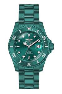 INVICTA Pro Diver Men 40mm Stainless Steel Green Green dial PC32 Quartz , Band Material: Stainless Steel, Band Tone: Green, Band Size [mm]: 20, Band Length [mm]: 185, Buckle Type: Fold over safety , Crown Type : Push, Case Material : Stainless Steel, Case Tone : Green, Case Size (mm) : 40, Case Back : Solid, Material of Hands : Metal, Color of Hands : White,Silver, Crystal Type : Flame Fusion, Bezel Material : Stainless Steel,Aluminum, Dial Material : Metal, Dial Color : Green .Purchasing these parts and having a non-authorized repair center open your watch voids all manufacturing warranties. Invicta cannot guarantee the quality standards of an altered timepiece, the standard 3-year limited warranty on Invicta timepieces shall be invalid if the timepiece is serviced at any time by an unauthorized repair center. This includes battery replacements, which must be done at an Invicta authorized repair center in order to maintain the eligibility of the warranty. Please follow the link below to learn more about Invicta's warranty.https://cdn.invictawatch.com/www/files/invicta-warranty-2018.pdf