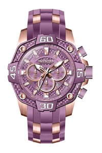 INVICTA Pro Diver Men 52mm Stainless Steel Rose Gold Rose Gold+Purple dial VD53 Quartz , Band Material: Stainless Steel,Silicone, Band Tone: Rose Gold,Purple, Band Size [mm]: 26, Band Length [mm]: 210, Buckle Type: Buckle , Crown Type : Push, Case Material : Stainless Steel, Case Tone : Rose Gold, Case Size (mm) : 52, Case Back : Solid, Material of Hands : Metal, Color of Hands : White,Rose Gold, Crystal Type : Flame Fusion, Bezel Material : Stainless Steel,Glass Fiber, Dial Material : Metal,Glass Fiber, Dial Color : Rose Gold,Purple .Purchasing these parts and having a non-authorized repair center open your watch voids all manufacturing warranties. Invicta cannot guarantee the quality standards of an altered timepiece, the standard 3-year limited warranty on Invicta timepieces shall be invalid if the timepiece is serviced at any time by an unauthorized repair center. This includes battery replacements, which must be done at an Invicta authorized repair center in order to maintain the eligibility of the warranty. Please follow the link below to learn more about Invicta's warranty.https://cdn.invictawatch.com/www/files/invicta-warranty-2018.pdf