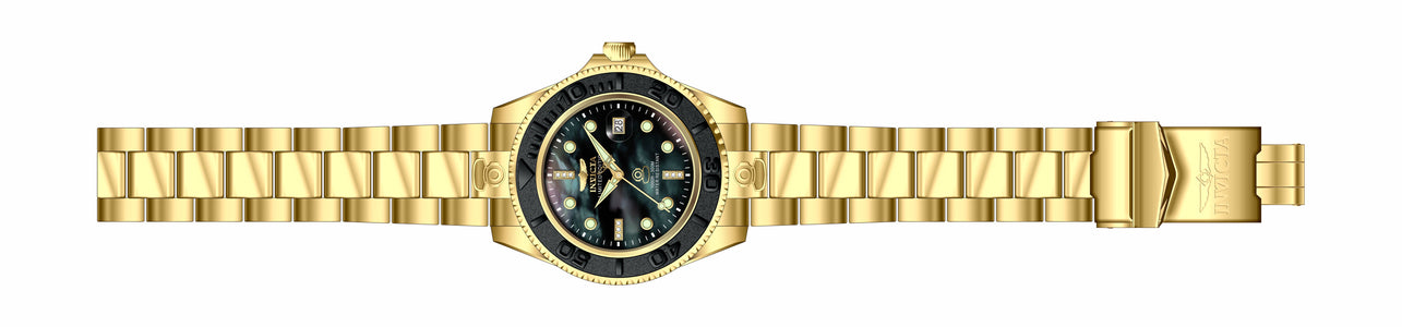 Band Material: Stainless Steel, Band Tone: Gold, Band Width: 22MM, Band Length: 210MM, Crown Type: Screw Down, Case Material: Stainless Steel, Case Tone: Gold,Black, Case Size [mm]: 47, Case Back: Exhibition, Material of Hands: Metal, Color of Hands: Gold,Luminous, Crystal Type: Mineral, Bezel Material: Stainless Steel, Dial Material: Mother of Pearl, Dial Color: Black, Dial Pattern: None .Purchasing these parts and having a non-authorized repair center open your watch voids all manufacturing warranties. Invicta cannot guarantee the quality standards of an altered timepiece, the standard 3-year limited warranty on Invicta timepieces shall be invalid if the timepiece is serviced at any time by an unauthorized repair center. This includes battery replacements, which must be done at an Invicta authorized repair center in order to maintain the eligibility of the warranty. Please follow the link below to learn more about Invicta's warranty.https://cdn.invictawatch.com/www/files/invicta-warranty-2018.pdf