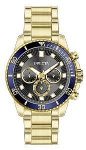 Band Material: Stainless Steel, Band Tone: Gold, Band Width: 22MM, Band Length: 187MM, Crown Type: Push, Case Material: Stainless Steel, Case Tone: Gold, Case Size [mm]: 45, Crystal Type: Flame Fusion, Dial Material: Brass, Dial Color: Black .Purchasing these parts and having a non-authorized repair center open your watch voids all manufacturing warranties. Invicta cannot guarantee the quality standards of an altered timepiece, the standard 3-year limited warranty on Invicta timepieces shall be invalid if the timepiece is serviced at any time by an unauthorized repair center. This includes battery replacements, which must be done at an Invicta authorized repair center in order to maintain the eligibility of the warranty. Please follow the link below to learn more about Invicta's warranty.https://cdn.invictawatch.com/www/files/invicta-warranty-2018.pdf