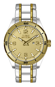 Band Material: Stainless Steel, Band Tone: Steel,Gold, Band Width: 22MM, Band Length: 185MM, Crown Type: Push, Case Material: Stainless Steel, Case Tone: Steel, Case Size [mm]: 44, Crystal Type: Flame Fusion, Dial Material: Brass, Dial Color: Gold .Purchasing these parts and having a non-authorized repair center open your watch voids all manufacturing warranties. Invicta cannot guarantee the quality standards of an altered timepiece, the standard 3-year limited warranty on Invicta timepieces shall be invalid if the timepiece is serviced at any time by an unauthorized repair center. This includes battery replacements, which must be done at an Invicta authorized repair center in order to maintain the eligibility of the warranty. Please follow the link below to learn more about Invicta's warranty.https://cdn.invictawatch.com/www/files/invicta-warranty-2018.pdf