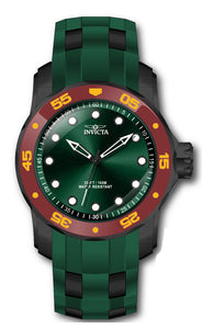 Band Material: Stainless Steel,Silicone, Band Tone: Black,Green, Band Width: 26MM, Band Length: 190MM, Crown Type: Push, Case Material: Stainless Steel, Case Tone: Black, Case Size [mm]: 48, Case Back: Solid, Material of Hands: Metal, Color of Hands: Black, Crystal Type: Flame Fusion, Bezel Material: Stainless Steel,Aluminum, Dial Material: Metal, Dial Color: Green .Purchasing these parts and having a non-authorized repair center open your watch voids all manufacturing warranties. Invicta cannot guarantee the quality standards of an altered timepiece, the standard 3-year limited warranty on Invicta timepieces shall be invalid if the timepiece is serviced at any time by an unauthorized repair center. This includes battery replacements, which must be done at an Invicta authorized repair center in order to maintain the eligibility of the warranty. Please follow the link below to learn more about Invicta's warranty.https://cdn.invictawatch.com/www/files/invicta-warranty-2018.pdf