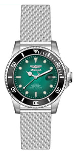 Band Material: Stainless Steel, Band Tone: Steel, Band Width: 24MM, Band Length: 205MM, Crown Type: Screw Down, Case Material: Stainless Steel, Case Tone: Steel, Case Size [mm]: 47, Case Back: Exhibition, Material of Hands: Brass, Color of Hands: Silver,Luminous, Crystal Type: Mineral, Bezel Material: Stainless Steel,Aluminum, Dial Material: Brass, Dial Color: Green, Dial Pattern: Glossy Finish .Purchasing these parts and having a non-authorized repair center open your watch voids all manufacturing warranties. Invicta cannot guarantee the quality standards of an altered timepiece, the standard 3-year limited warranty on Invicta timepieces shall be invalid if the timepiece is serviced at any time by an unauthorized repair center. This includes battery replacements, which must be done at an Invicta authorized repair center in order to maintain the eligibility of the warranty. Please follow the link below to learn more about Invicta's warranty.https://cdn.invictawatch.com/www/files/invicta-warranty-2018.pdf