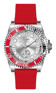 Band Material: Silicone, Band Tone: Red, Band Width: 22MM, Band Length: 210MM, Crown Type: Screw Down, Case Material: Stainless Steel, Case Tone: Steel, Case Size [mm]: 43, Case Back: Solid, Material of Hands: Brass, Color of Hands: Silver,Luminous, Crystal Type: Mineral, Bezel Material: Stainless Steel,Aluminum, Dial Material: Brass, Dial Color: Silver, Dial Pattern: Sun-ray Finish .Purchasing these parts and having a non-authorized repair center open your watch voids all manufacturing warranties. Invicta cannot guarantee the quality standards of an altered timepiece, the standard 3-year limited warranty on Invicta timepieces shall be invalid if the timepiece is serviced at any time by an unauthorized repair center. This includes battery replacements, which must be done at an Invicta authorized repair center in order to maintain the eligibility of the warranty. Please follow the link below to learn more about Invicta's warranty.https://cdn.invictawatch.com/www/files/invicta-warranty-2018.pdf