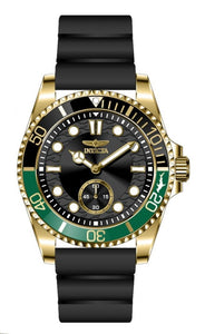 Band Material: Silicone, Band Tone: Black, Band Width: 22MM, Band Length: 210MM, Crown Type: Screw Down, Case Material: Stainless Steel, Case Tone: Gold, Case Size [mm]: 43, Case Back: Solid, Material of Hands: Brass, Color of Hands: Gold,Luminous, Crystal Type: Mineral, Bezel Material: Stainless Steel,Aluminum, Dial Material: Brass, Dial Color: Black, Dial Pattern: Sun-ray Finish .Purchasing these parts and having a non-authorized repair center open your watch voids all manufacturing warranties. Invicta cannot guarantee the quality standards of an altered timepiece, the standard 3-year limited warranty on Invicta timepieces shall be invalid if the timepiece is serviced at any time by an unauthorized repair center. This includes battery replacements, which must be done at an Invicta authorized repair center in order to maintain the eligibility of the warranty. Please follow the link below to learn more about Invicta's warranty.https://cdn.invictawatch.com/www/files/invicta-warranty-2018.pdf