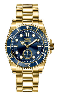Band Material: Stainless Steel, Band Tone: Gold, Band Width: 22MM, Band Length: 185MM, Crown Type: Screw Down, Case Material: Stainless Steel, Case Tone: Gold, Case Size [mm]: 43, Case Back: Solid, Material of Hands: Brass, Color of Hands: Gold,Luminous, Crystal Type: Mineral, Bezel Material: Stainless Steel,Aluminum, Dial Material: Brass, Dial Color: Blue, Dial Pattern: Sun-ray Finish .Purchasing these parts and having a non-authorized repair center open your watch voids all manufacturing warranties. Invicta cannot guarantee the quality standards of an altered timepiece, the standard 3-year limited warranty on Invicta timepieces shall be invalid if the timepiece is serviced at any time by an unauthorized repair center. This includes battery replacements, which must be done at an Invicta authorized repair center in order to maintain the eligibility of the warranty. Please follow the link below to learn more about Invicta's warranty.https://cdn.invictawatch.com/www/files/invicta-warranty-2018.pdf