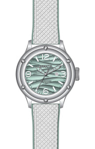 Band Material: Silicone, Band Tone: White,Tiffany Blue, Band Width: 24MM, Band Length: 200MM, Crown Type: Push, Case Material: Stainless Steel, Case Tone: Steel, Case Size [mm]: 50.50, Case Back: Solid screwed, Material of Hands: Metal, Color of Hands: Silver,Turquoise, Crystal Type: Mineral, Bezel Material: Stainless Steel, Dial Material: Metal, Dial Color: Tiffany Blue, Dial Pattern: Textured Pattern .Purchasing these parts and having a non-authorized repair center open your watch voids all manufacturing warranties. Invicta cannot guarantee the quality standards of an altered timepiece, the standard 3-year limited warranty on Invicta timepieces shall be invalid if the timepiece is serviced at any time by an unauthorized repair center. This includes battery replacements, which must be done at an Invicta authorized repair center in order to maintain the eligibility of the warranty. Please follow the link below to learn more about Invicta's warranty.https://cdn.invictawatch.com/www/files/invicta-warranty-2018.pdf