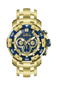 INVICTA Pro Diver Men 52mm Stainless Steel Gold Blue dial VD54 Quartz , Band Material: Stainless Steel, Band Tone: Gold, Band Size [mm]: 26, Band Length [mm]: 210, Buckle Type: Fold over safety , Crown Type : Push, Case Material : Stainless Steel, Case Tone : Gold, Case Size (mm) : 52, Case Back : Solid, Material of Hands : Metal, Color of Hands : Gold, Crystal Type : Flame Fusion, Bezel Material : Stainless Steel, Dial Material : Glass Fiber, Dial Color : Blue .Purchasing these parts and having a non-authorized repair center open your watch voids all manufacturing warranties. Invicta cannot guarantee the quality standards of an altered timepiece, the standard 3-year limited warranty on Invicta timepieces shall be invalid if the timepiece is serviced at any time by an unauthorized repair center. This includes battery replacements, which must be done at an Invicta authorized repair center in order to maintain the eligibility of the warranty. Please follow the link below to learn more about Invicta's warranty.https://cdn.invictawatch.com/www/files/invicta-warranty-2018.pdf