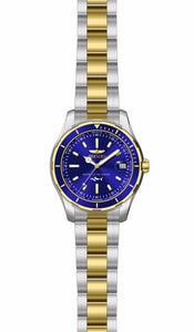 INVICTA Pro Diver Lady 34mm Stainless Steel Gold + Steel Blue dial PC32 Quartz , Band Material: Stainless Steel, Band Tone: Steel,Gold, Band Size [mm]: 16, Band Length [mm]: 195, Buckle Type: Fold over safety , Crown Type : Push, Case Material : Stainless Steel, Case Tone : Gold,Steel, Case Size (mm) : 34, Case Back : Solid, Material of Hands : Metal, Color of Hands : Gold,Luminous, Crystal Type : Flame Fusion, Bezel Material : Stainless Steel, Dial Material : Metal, Dial Color : Blue, Dial Pattern : Sun-ray Finish .Purchasing these parts and having a non-authorized repair center open your watch voids all manufacturing warranties. Invicta cannot guarantee the quality standards of an altered timepiece, the standard 3-year limited warranty on Invicta timepieces shall be invalid if the timepiece is serviced at any time by an unauthorized repair center. This includes battery replacements, which must be done at an Invicta authorized repair center in order to maintain the eligibility of the warranty. Please follow the link below to learn more about Invicta's warranty.https://cdn.invictawatch.com/www/files/invicta-warranty-2018.pdf
