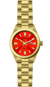 INVICTA Pro Diver Men 43mm Stainless Steel Gold Red dial PC32 Quartz , Band Material: Stainless Steel, Band Tone: Gold, Band Size [mm]: 22, Band Length [mm]: 215, Buckle Type: Fold over , Crown Type : Push, Case Material : Stainless Steel, Case Tone : Gold, Case Size (mm) : 43, Case Back : Solid, Material of Hands : Metal, Color of Hands : Gold,Luminous, Crystal Type : Mineral, Bezel Material : Stainless Steel, Dial Material : Metal, Dial Color : Red, Dial Pattern : Sun-ray Finish .Purchasing these parts and having a non-authorized repair center open your watch voids all manufacturing warranties. Invicta cannot guarantee the quality standards of an altered timepiece, the standard 3-year limited warranty on Invicta timepieces shall be invalid if the timepiece is serviced at any time by an unauthorized repair center. This includes battery replacements, which must be done at an Invicta authorized repair center in order to maintain the eligibility of the warranty. Please follow the link below to learn more about Invicta's warranty.https://cdn.invictawatch.com/www/files/invicta-warranty-2018.pdf