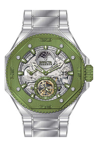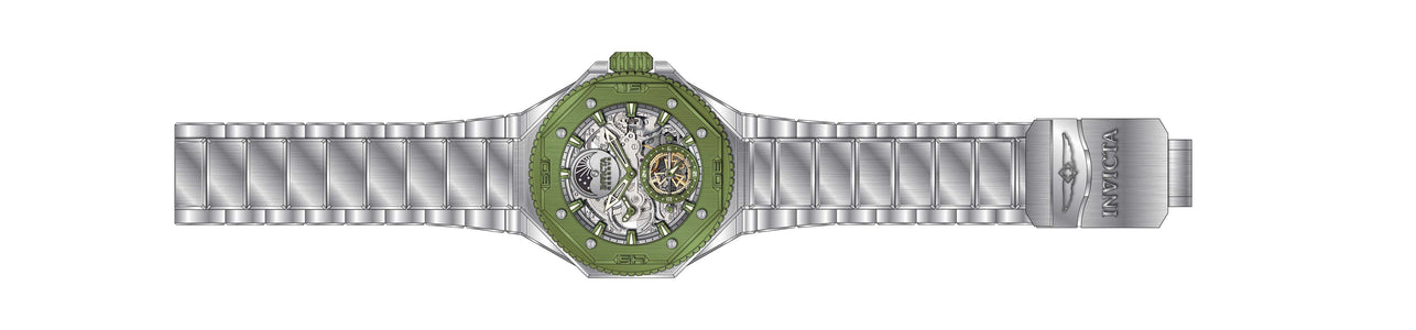 INVICTA Reserve Men 55.1mm Stainless Steel Steel + Mint Silver+Green dial Z2031 Automatic , Band Material: Stainless Steel, Band Tone: Steel, Band Size [mm]: 30, Band Length [mm]: 230, Buckle Type: Fold over safety , Crown Type : Screw Down, Case Material : Stainless Steel, Case Tone : Steel,Mint, Case Size (mm) : 55.1, Case Back : Exhibition, Material of Hands : Metal, Color of Hands : Green,Luminous, Crystal Type : Flame Fusion, Bezel Material : Stainless Steel, Dial Material : Metal,Skeleton, Dial Color : Silver,Green, Dial Pattern : None .Purchasing these parts and having a non-authorized repair center open your watch voids all manufacturing warranties. Invicta cannot guarantee the quality standards of an altered timepiece, the standard 3-year limited warranty on Invicta timepieces shall be invalid if the timepiece is serviced at any time by an unauthorized repair center. This includes battery replacements, which must be done at an Invicta authorized repair center in order to maintain the eligibility of the warranty. Please follow the link below to learn more about Invicta's warranty.https://cdn.invictawatch.com/www/files/invicta-warranty-2018.pdf