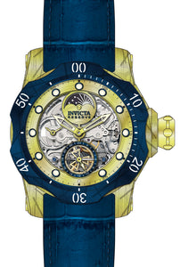 Band Material: Leather, Band Tone: Blue, Band Width: 26MM, Band Length: 230MM, Buckle Type: Buckle, Clasp Type: Buckle, Crown Type : Screw Down, Case Material : Stainless Steel, Case Tone : Gold,Dark Blue, Case Size [mm] : 53.7, Case Back : Exhibition, Material of Hands : Metal, Color of Hands : Gold,Luminous, Crystal Type : Flame Fusion, Bezel Material : Stainless Steel, Dial Material : Metal,Skeleton, Dial Color : Blue,Gold, Dial Pattern : None .Purchasing these parts and having a non-authorized repair center open your watch voids all manufacturing warranties. Invicta cannot guarantee the quality standards of an altered timepiece, the standard 3-year limited warranty on Invicta timepieces shall be invalid if the timepiece is serviced at any time by an unauthorized repair center. This includes battery replacements, which must be done at an Invicta authorized repair center in order to maintain the eligibility of the warranty. Please follow the link below to learn more about Invicta's warranty.https://cdn.invictawatch.com/www/files/invicta-warranty-2018.pdf