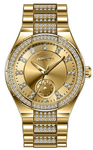 INVICTA Specialty Lady 38mm Stainless Steel Gold Gold dial VH60 Quartz , Band Material: Stainless Steel,Crystal, Band Tone: Gold, Band Size [mm]: 22, Band Length [mm]: 190, Buckle Type: Fold over safety , Crown Type : Push, Case Material : Stainless Steel, Case Tone : Gold, Case Size (mm) : 38, Case Back : Solid, Material of Hands : Metal, Color of Hands : Gold, Crystal Type : Flame Fusion, Bezel Material : Stainless Steel,Crystal, Dial Material : Metal, Dial Color : Gold, Dial Pattern : Sun-ray Finish .Purchasing these parts and having a non-authorized repair center open your watch voids all manufacturing warranties. Invicta cannot guarantee the quality standards of an altered timepiece, the standard 3-year limited warranty on Invicta timepieces shall be invalid if the timepiece is serviced at any time by an unauthorized repair center. This includes battery replacements, which must be done at an Invicta authorized repair center in order to maintain the eligibility of the warranty. Please follow the link below to learn more about Invicta's warranty.https://cdn.invictawatch.com/www/files/invicta-warranty-2018.pdf