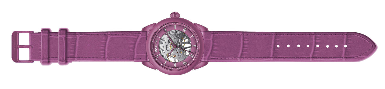 INVICTA Specialty Men 42mm Stainless Steel Purple Silver dial JSD-006SY Mechanical , Band Material: Leather, Band Tone: Purple, Band Size [mm]: 22, Band Length [mm]: 225, Buckle Type: Buckle , Crown Type : Push, Case Material : Stainless Steel, Case Tone : Purple, Case Size (mm) : 42, Case Back : Exhibition, Material of Hands : Metal, Color of Hands : Purple, Crystal Type : Flame Fusion, Bezel Material : Stainless Steel, Dial Material : Metal, Dial Color : Silver .Purchasing these parts and having a non-authorized repair center open your watch voids all manufacturing warranties. Invicta cannot guarantee the quality standards of an altered timepiece, the standard 3-year limited warranty on Invicta timepieces shall be invalid if the timepiece is serviced at any time by an unauthorized repair center. This includes battery replacements, which must be done at an Invicta authorized repair center in order to maintain the eligibility of the warranty. Please follow the link below to learn more about Invicta's warranty.https://cdn.invictawatch.com/www/files/invicta-warranty-2018.pdf