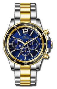 INVICTA Specialty Men 45mm Stainless Steel Steel Blue dial VD54 Quartz , Band Material: Stainless Steel, Band Tone: Gold,Silver, Band Size [mm]: 22, Band Length [mm]: 182.5, Buckle Type: Fold over safety , Crown Type : Push, Case Material : Stainless Steel, Case Tone : Steel, Case Size (mm) : 45, Case Back : Solid, Material of Hands : Metal, Color of Hands : Gold, Crystal Type : Flame Fusion, Bezel Material : Stainless Steel, Dial Material : Metal, Dial Color : Blue, Dial Pattern : Textured Pattern .Purchasing these parts and having a non-authorized repair center open your watch voids all manufacturing warranties. Invicta cannot guarantee the quality standards of an altered timepiece, the standard 3-year limited warranty on Invicta timepieces shall be invalid if the timepiece is serviced at any time by an unauthorized repair center. This includes battery replacements, which must be done at an Invicta authorized repair center in order to maintain the eligibility of the warranty. Please follow the link below to learn more about Invicta's warranty.https://cdn.invictawatch.com/www/files/invicta-warranty-2018.pdf