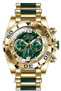 INVICTA Speedway Men 48mm Stainless Steel Gold Green dial VD54 Quartz , Band Material: Stainless Steel,Glass Fiber, Band Tone: Gold,Green, Band Size [mm]: 24, Band Length [mm]: 210, Buckle Type: Fold over safety , Crown Type : Push, Case Material : Stainless Steel, Case Tone : Gold, Case Size (mm) : 48, Case Back : Solid, Material of Hands : Metal, Color of Hands : Gold, Crystal Type : Mineral, Bezel Material : Stainless Steel, Dial Material : Glass Fiber, Dial Color : Green .Purchasing these parts and having a non-authorized repair center open your watch voids all manufacturing warranties. Invicta cannot guarantee the quality standards of an altered timepiece, the standard 3-year limited warranty on Invicta timepieces shall be invalid if the timepiece is serviced at any time by an unauthorized repair center. This includes battery replacements, which must be done at an Invicta authorized repair center in order to maintain the eligibility of the warranty. Please follow the link below to learn more about Invicta's warranty.https://cdn.invictawatch.com/www/files/invicta-warranty-2018.pdf