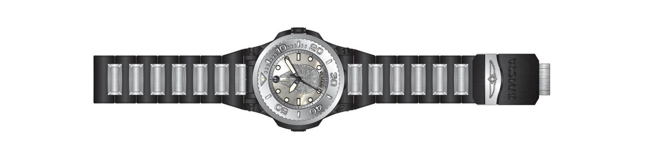 Band Material: Stainless Steel, Band Tone: Black, Steel, Band Width: 33MM, Band Length: 210MM, Crown Type: Screw Down, Push, Case Material: Stainless Steel, Case Tone: Steel, Black, Case Size [mm]: 54.7, Color of Hands: Gunmetal, Luminous, Silver, Crystal Type: Mineral, Bezel Material: Stainless Steel, Dial Material: Oyster, Mother of Pearl, Metal, Dial Color: White, Black .Purchasing these parts and having a non-authorized repair center open your watch voids all manufacturing warranties. Invicta cannot guarantee the quality standards of an altered timepiece, the standard 3-year limited warranty on Invicta timepieces shall be invalid if the timepiece is serviced at any time by an unauthorized repair center. This includes battery replacements, which must be done at an Invicta authorized repair center in order to maintain the eligibility of the warranty. Please follow the link below to learn more about Invicta's warranty.https://cdn.invictawatch.com/www/files/invicta-warranty-2018.pdf