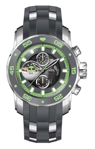 Band Material: Silicone, Stainless Steel, Band Tone: Grey, Steel, Band Width: 26MM, Band Length: 210MM, Crown Type: Push, Case Material: Stainless Steel, Case Tone: Steel, Case Size [mm]: 48, Color of Hands: Brown, Green, Silver, Crystal Type: Flame Fusion, Bezel Material: Aluminum, Stainless Steel, Dial Material: Metal, Dial Color: Green, Grey, Brown, Silver .Purchasing these parts and having a non-authorized repair center open your watch voids all manufacturing warranties. Invicta cannot guarantee the quality standards of an altered timepiece, the standard 3-year limited warranty on Invicta timepieces shall be invalid if the timepiece is serviced at any time by an unauthorized repair center. This includes battery replacements, which must be done at an Invicta authorized repair center in order to maintain the eligibility of the warranty. Please follow the link below to learn more about Invicta's warranty.https://cdn.invictawatch.com/www/files/invicta-warranty-2018.pdf