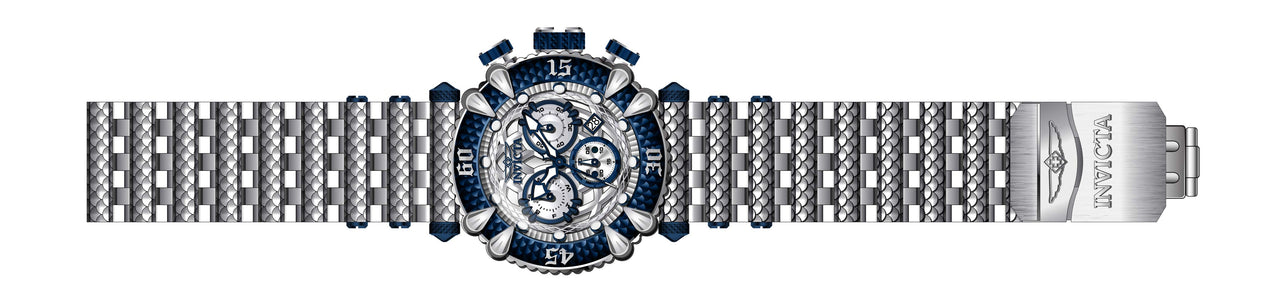 Band Material: Stainless Steel, Band Tone: Steel,Blue, Band Size [mm]: 28, Band Length [mm]: 185, Buckle Type: Fold over safety . Please note that bands do not ship with spring bars or T bars. If you need these parts, please add them to your cart with the corresponding part sku.