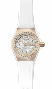 Band Material : Silicone, Band Tone : White, Band Size [mm] : 26, Band Length [mm] : 185, Crown Type : Push, Case Material : Stainless Steel, Case Tone : Rose Gold, Case Size [mm] : 40, Case Back : Solid, Material of Hands : Metal, Color of Hands : Rose Gold,Luminous, Crystal Type : Flame Fusion, Bezel Material : Stainless Steel, Dial Material : Metal, Dial Color : Silver, Dial Pattern : Textured .Purchasing these parts and having a non-authorized repair center open your watch voids all manufacturing warranties. Invicta cannot guarantee the quality standards of an altered timepiece, the standard 3-year limited warranty on Invicta timepieces shall be invalid if the timepiece is serviced at any time by an unauthorized repair center. This includes battery replacements, which must be done at an Invicta authorized repair center in order to maintain the eligibility of the warranty. Please follow the link below to learn more about Invicta's warranty.https://cdn.invictawatch.com/www/files/invicta-warranty-2018.pdf