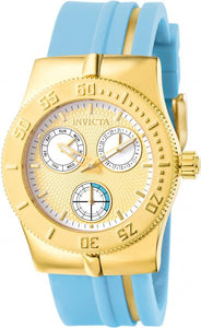 Individual Spare PARTS For Lady Invicta Wildflower 5917, Band Material Stainless Steel, Polyurethane, Band Color Light Blue, Band Width 22X22 MM, Band Length 196 MM, Buckle Type Regular, Clasp Type Foldover, Buckle, Crown Type Push, Case Material Stainless Steel, Case Tone Gold, Case Size (mm) 36, Case Back Solid, Material of Hands Metal, Color of Hands Gold, Luminous, Crystal Type Mineral, Bezel Material Stainless Steel, Dial Material Metal, Dial Color Blue, White, Gold, Dial Pattern 0Purchasing these parts and having a non-authorized repair center open your watch voids all manufacturing warranties. Invicta cannot guarantee the quality standards of an altered timepiece, the standard 3-year limited warranty on Invicta timepieces shall be invalid if the timepiece is serviced at any time by an unauthorized repair center. This includes battery replacements, which must be done at an Invicta authorized repair center in order to maintain the eligibility of the warranty. Please follow the link below to learn more about Invicta's warranty.https://cdn.invictawatch.com/www/files/invicta-warranty-2018.pdf