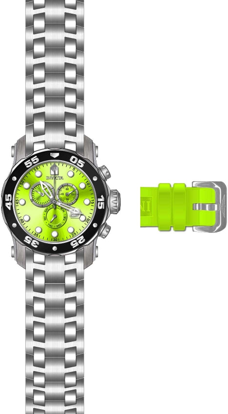 Band For Men Invicta Pro Diver 10580, Band Material Stainless Steel, Band Color Steel, Band Width 26 MM, Band Length 220 MM, Buckle Type Diver, Clasp Type Safety, No Spring Bars. Please note that bands do not ship with spring bars or T bars. If you need these parts, please add them to your cart with the corresponding part sku.