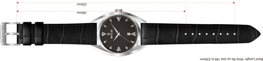 Band For Men Invicta Vintage 12210, Band Material Leather, Band Color Black, Band Width 22 MM, Band Length 235 MM, Buckle Type Regular, Clasp Type Regular. Please note that bands do not ship with spring bars or T bars. If you need these parts, please add them to your cart with the corresponding part sku.