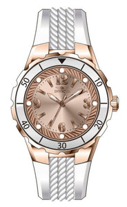Band Material: Silicone, Band Tone: White, Band Width: 23.5MM, Band Length: 205MM, Crown Type: Push, Case Material: Stainless Steel, Case Tone: Rose Gold, Case Size [mm]: 38, Case Back: Solid, Material of Hands: Brass, Color of Hands: Rose Gold,Luminous, Crystal Type: Mineral, Bezel Material: Stainless Steel,Aluminum, Dial Material: Brass, Dial Color: Rose Gold, Dial Pattern: Sun-ray Finish .Purchasing these parts and having a non-authorized repair center open your watch voids all manufacturing warranties. Invicta cannot guarantee the quality standards of an altered timepiece, the standard 3-year limited warranty on Invicta timepieces shall be invalid if the timepiece is serviced at any time by an unauthorized repair center. This includes battery replacements, which must be done at an Invicta authorized repair center in order to maintain the eligibility of the warranty. Please follow the link below to learn more about Invicta's warranty.https://cdn.invictawatch.com/www/files/invicta-warranty-2018.pdf