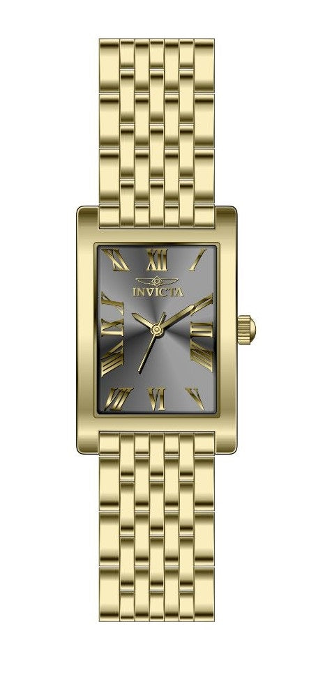 Band Material: Stainless Steel, Band Tone: Gold, Band Width: 14MM, Band Length: 174MM, Crown Type: Push, Case Material: Stainless Steel, Case Tone: Gold, Case Size [mm]: 19.50, Case Back: Solid, Material of Hands: Brass, Color of Hands: Gold, Crystal Type: Mineral, Bezel Material: None, Dial Material: Brass, Dial Color: Charcoal, Dial Pattern: Sun-ray Finish .Purchasing these parts and having a non-authorized repair center open your watch voids all manufacturing warranties. Invicta cannot guarantee the quality standards of an altered timepiece, the standard 3-year limited warranty on Invicta timepieces shall be invalid if the timepiece is serviced at any time by an unauthorized repair center. This includes battery replacements, which must be done at an Invicta authorized repair center in order to maintain the eligibility of the warranty. Please follow the link below to learn more about Invicta's warranty.https://cdn.invictawatch.com/www/files/invicta-warranty-2018.pdf