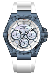 Band Material: Silicone, Band Tone: White, Band Width: 22MM, Band Length: 210MM, Crown Type: Push, Case Material: Stainless Steel, Case Tone: Blue, Case Size [mm]: 36, Case Back: Solid, Material of Hands: Metal, Color of Hands: White,Blue, Crystal Type: Flame Fusion, Bezel Material: Stainless Steel, Dial Material: Metal,Mother of Pearl, Dial Color: White,Silver .Purchasing these parts and having a non-authorized repair center open your watch voids all manufacturing warranties. Invicta cannot guarantee the quality standards of an altered timepiece, the standard 3-year limited warranty on Invicta timepieces shall be invalid if the timepiece is serviced at any time by an unauthorized repair center. This includes battery replacements, which must be done at an Invicta authorized repair center in order to maintain the eligibility of the warranty. Please follow the link below to learn more about Invicta's warranty.https://cdn.invictawatch.com/www/files/invicta-warranty-2018.pdf
