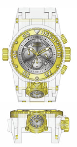 INVICTA Bolt Men 52mm Stainless Steel + Plastic Gold + White + Steel Silver dial VD53 Quartz , Band Material: Stainless Steel,Silicone, Band Tone: Gold,White, Band Size [mm]: 34, Band Length [mm]: 210, Buckle Type: Buckle , Crown Type : Screw Down,Push, Case Material : Stainless Steel,Plastic, Case Tone : Gold,White,Steel, Case Size (mm) : 52, Case Back : Solid, Material of Hands : Metal, Color of Hands : Gold,Luminous, Crystal Type : Mineral, Bezel Material : Stainless Steel, Dial Material : Metal, Dial Color : Silver, Dial Pattern : Textured Pattern .Purchasing these parts and having a non-authorized repair center open your watch voids all manufacturing warranties. Invicta cannot guarantee the quality standards of an altered timepiece, the standard 3-year limited warranty on Invicta timepieces shall be invalid if the timepiece is serviced at any time by an unauthorized repair center. This includes battery replacements, which must be done at an Invicta authorized repair center in order to maintain the eligibility of the warranty. Please follow the link below to learn more about Invicta's warranty.https://cdn.invictawatch.com/www/files/invicta-warranty-2018.pdf