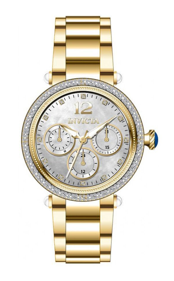 Band Material: Stainless Steel, Band Tone: Gold, Band Width: 18MM, Band Length: 180MM, Crown Type: Push, Case Material: Stainless Steel, Case Tone: Gold, Case Size [mm]: 37, Case Back: Solid, Material of Hands: Brass, Color of Hands: Gold, Crystal Type: Flame Fusion, Bezel Material: Stainless Steel,Crystal, Dial Material: Mother of Pearl,Brass, Dial Color: White, Dial Pattern: CD Pattern .Purchasing these parts and having a non-authorized repair center open your watch voids all manufacturing warranties. Invicta cannot guarantee the quality standards of an altered timepiece, the standard 3-year limited warranty on Invicta timepieces shall be invalid if the timepiece is serviced at any time by an unauthorized repair center. This includes battery replacements, which must be done at an Invicta authorized repair center in order to maintain the eligibility of the warranty. Please follow the link below to learn more about Invicta's warranty.https://cdn.invictawatch.com/www/files/invicta-warranty-2018.pdf