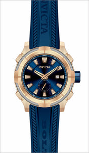 INVICTA Bolt Men 48mm Stainless Steel Rose Gold + Blue + Steel Blue dial OT45 Quartz , Band Material: Silicone, Band Tone: Blue, Band Size [mm]: 24, Band Length [mm]: 220, Buckle Type: Buckle , Crown Type : Push, Case Material : Stainless Steel, Case Tone : Rose Gold,Blue,Steel, Case Size (mm) : 48, Case Back : Solid, Material of Hands : Metal, Color of Hands : Black,Rose Gold, Crystal Type : Flame Fusion, Bezel Material : Stainless Steel, Dial Material : Metal, Dial Color : Blue, Dial Pattern : None .Purchasing these parts and having a non-authorized repair center open your watch voids all manufacturing warranties. Invicta cannot guarantee the quality standards of an altered timepiece, the standard 3-year limited warranty on Invicta timepieces shall be invalid if the timepiece is serviced at any time by an unauthorized repair center. This includes battery replacements, which must be done at an Invicta authorized repair center in order to maintain the eligibility of the warranty. Please follow the link below to learn more about Invicta's warranty.https://cdn.invictawatch.com/www/files/invicta-warranty-2018.pdf