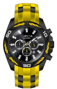 Band Material: Stainless Steel,Silicone, Band Tone: Black,Yellow, Band Width: 26MM, Band Length: 210MM, Crown Type: Push, Case Material: Stainless Steel, Case Tone: Black, Case Size [mm]: 50, Case Back: Solid, Material of Hands: Metal, Color of Hands: Silver,Yellow, Crystal Type: Flame Fusion, Bezel Material: Stainless Steel,Cable, Dial Material: Metal, Dial Color: Black, Dial Pattern: Sun-ray Finish .Purchasing these parts and having a non-authorized repair center open your watch voids all manufacturing warranties. Invicta cannot guarantee the quality standards of an altered timepiece, the standard 3-year limited warranty on Invicta timepieces shall be invalid if the timepiece is serviced at any time by an unauthorized repair center. This includes battery replacements, which must be done at an Invicta authorized repair center in order to maintain the eligibility of the warranty. Please follow the link below to learn more about Invicta's warranty.https://cdn.invictawatch.com/www/files/invicta-warranty-2018.pdf