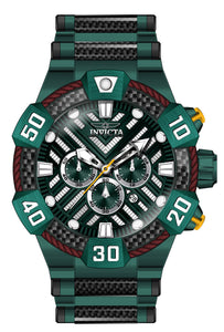 Band Material: Stainless Steel,Carbon Fiber, Band Tone: Black,Green, Band Width: 32MM, Band Length: 190MM, Crown Type: Push, Case Material: Stainless Steel, Case Tone: Green, Case Size [mm]: 52, Case Back: Solid, Material of Hands: Metal, Color of Hands: Silver,Yellow, Crystal Type: Flame Fusion, Bezel Material: Stainless Steel,Carbon Fiber,Cable, Dial Material: Metal, Dial Color: Silver,Green .Purchasing these parts and having a non-authorized repair center open your watch voids all manufacturing warranties. Invicta cannot guarantee the quality standards of an altered timepiece, the standard 3-year limited warranty on Invicta timepieces shall be invalid if the timepiece is serviced at any time by an unauthorized repair center. This includes battery replacements, which must be done at an Invicta authorized repair center in order to maintain the eligibility of the warranty. Please follow the link below to learn more about Invicta's warranty.https://cdn.invictawatch.com/www/files/invicta-warranty-2018.pdf