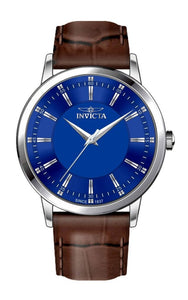 Band Material: Leather, Band Tone: Brown, Band Width: 22MM, Band Length: 210MM, Crown Type: Push, Case Material: Stainless Steel, Case Tone: Steel, Case Size [mm]: 43, Case Back: Solid, Material of Hands: Brass, Color of Hands: Silver, Crystal Type: Mineral, Bezel Material: None, Dial Material: Brass, Dial Color: Blue, Dial Pattern: Sun-ray Finish .Purchasing these parts and having a non-authorized repair center open your watch voids all manufacturing warranties. Invicta cannot guarantee the quality standards of an altered timepiece, the standard 3-year limited warranty on Invicta timepieces shall be invalid if the timepiece is serviced at any time by an unauthorized repair center. This includes battery replacements, which must be done at an Invicta authorized repair center in order to maintain the eligibility of the warranty. Please follow the link below to learn more about Invicta's warranty.https://cdn.invictawatch.com/www/files/invicta-warranty-2018.pdf