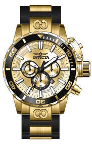 INVICTA Corduba Men 52mm Stainless Steel Gold Gold dial VD53 Quartz , Band Material: Stainless Steel,Polyurethane, Band Tone: Gold,Black, Band Size [mm]: 28, Band Length [mm]: 185, Buckle Type: Fold over safety , Crown Type : Push, Case Material : Stainless Steel, Case Tone : Gold, Case Size (mm) : 52, Case Back : Solid, Material of Hands : Metal, Color of Hands : Black, Crystal Type : Flame Fusion, Bezel Material : Stainless Steel, Dial Material : Metal, Dial Color : Gold, Dial Pattern : Sun-ray Finish .Purchasing these parts and having a non-authorized repair center open your watch voids all manufacturing warranties. Invicta cannot guarantee the quality standards of an altered timepiece, the standard 3-year limited warranty on Invicta timepieces shall be invalid if the timepiece is serviced at any time by an unauthorized repair center. This includes battery replacements, which must be done at an Invicta authorized repair center in order to maintain the eligibility of the warranty. Please follow the link below to learn more about Invicta's warranty.https://cdn.invictawatch.com/www/files/invicta-warranty-2018.pdf