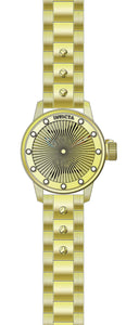 INVICTA Pro Diver Lady 38mm Stainless Steel Gold Gold dial NH35A Automatic , Band Material: Stainless Steel, Band Tone: Gold, Band Size [mm]: 18, Band Length [mm]: 180, Buckle Type: Fold over safety , Crown Type:Push, Case Material:Stainless Steel, Case Tone:Gold, Case Size (mm):38, Case Back:Solid, Material of Hands:Metal, Color of Hands:Orange,Luminous, Crystal Type:Mineral, Bezel Material:Stainless Steel, Dial Material:Metal, Dial Color:Gold, Dial Pattern:None .Purchasing these parts and having a non-authorized repair center open your watch voids all manufacturing warranties. Invicta cannot guarantee the quality standards of an altered timepiece, the standard 3-year limited warranty on Invicta timepieces shall be invalid if the timepiece is serviced at any time by an unauthorized repair center. This includes battery replacements, which must be done at an Invicta authorized repair center in order to maintain the eligibility of the warranty. Please follow the link below to learn more about Invicta's warranty.https://cdn.invictawatch.com/www/files/invicta-warranty-2018.pdf