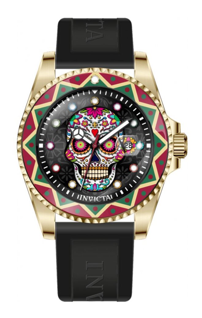Band Material: Polyurethane, Band Tone: Black, Band Width: 22MM, Band Length: 230MM, Crown Type: Screw Down, Case Material: Stainless Steel, Case Tone: Gold, Case Size [mm]: 43, Case Back: Solid, Material of Hands: Metal, Color of Hands: Black,Red,Luminous, Crystal Type: Mineral, Bezel Material: Stainless Steel,Aluminum, Dial Material: Metal, Dial Color: Black,Blue,Red,Yellow,Green,Purple, Dial Pattern: Sandblast Finish .Purchasing these parts and having a non-authorized repair center open your watch voids all manufacturing warranties. Invicta cannot guarantee the quality standards of an altered timepiece, the standard 3-year limited warranty on Invicta timepieces shall be invalid if the timepiece is serviced at any time by an unauthorized repair center. This includes battery replacements, which must be done at an Invicta authorized repair center in order to maintain the eligibility of the warranty. Please follow the link below to learn more about Invicta's warranty.https://cdn.invictawatch.com/www/files/invicta-warranty-2018.pdf