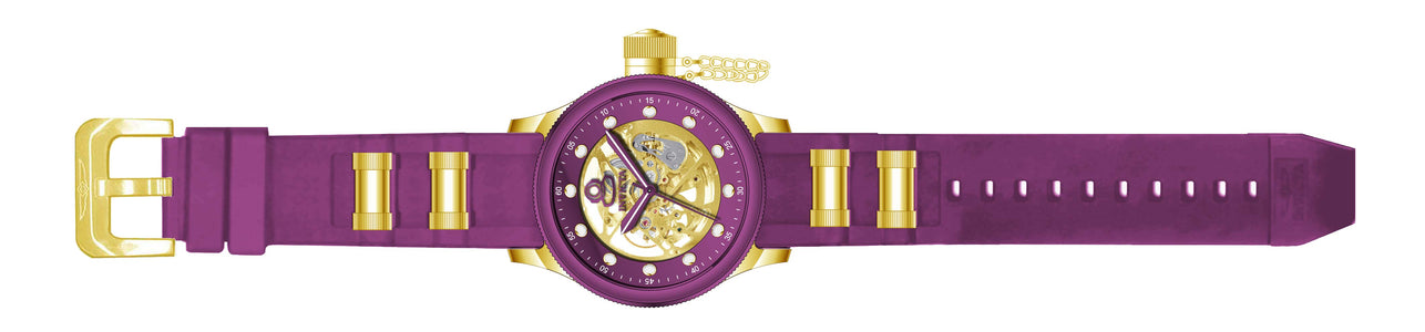 INVICTA Pro Diver Men 51.5mm Stainless Steel Gold Gold dial G3265Z Automatic , Band Material: Stainless Steel,Silicone, Band Tone: Gold,Purple, Band Size [mm]: 26, Band Length [mm]: 225, Buckle Type: Buckle , Crown Type : Push, Case Material : Stainless Steel, Case Tone : Gold, Case Size (mm) : 51.5, Case Back : Exhibition, Material of Hands : Metal, Color of Hands : White,Purple, Crystal Type : Flame Fusion, Bezel Material : Stainless Steel, Dial Material : Metal, Dial Color : Gold, Dial Pattern : None .Purchasing these parts and having a non-authorized repair center open your watch voids all manufacturing warranties. Invicta cannot guarantee the quality standards of an altered timepiece, the standard 3-year limited warranty on Invicta timepieces shall be invalid if the timepiece is serviced at any time by an unauthorized repair center. This includes battery replacements, which must be done at an Invicta authorized repair center in order to maintain the eligibility of the warranty. Please follow the link below to learn more about Invicta's warranty.https://cdn.invictawatch.com/www/files/invicta-warranty-2018.pdf