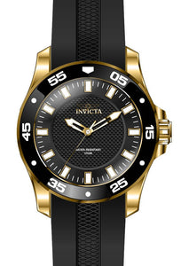 Band Material: Silicone, Band Tone: Black, Band Width: 26MM, Band Length: 210MM, Crown Type: Push, Case Material: Stainless Steel, Case Tone: Gold, Case Size [mm]: 50, Case Back: Solid, Material of Hands: Metal, Color of Hands: Gold, Crystal Type: Flame Fusion, Bezel Material: Stainless Steel,Aluminum, Dial Material: Metal, Dial Color: Black, Dial Pattern: Textured Pattern .Purchasing these parts and having a non-authorized repair center open your watch voids all manufacturing warranties. Invicta cannot guarantee the quality standards of an altered timepiece, the standard 3-year limited warranty on Invicta timepieces shall be invalid if the timepiece is serviced at any time by an unauthorized repair center. This includes battery replacements, which must be done at an Invicta authorized repair center in order to maintain the eligibility of the warranty. Please follow the link below to learn more about Invicta's warranty.https://cdn.invictawatch.com/www/files/invicta-warranty-2018.pdf