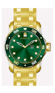 Band Material: Stainless Steel, Band Tone: Gold, Band Width: 26MM, Band Length: 215MM, Crown Type: Push, Case Material: Stainless Steel, Case Tone: Gold, Case Size [mm]: 48, Crystal Type: Flame Fusion, Dial Material: Brass, Dial Color: Green .Purchasing these parts and having a non-authorized repair center open your watch voids all manufacturing warranties. Invicta cannot guarantee the quality standards of an altered timepiece, the standard 3-year limited warranty on Invicta timepieces shall be invalid if the timepiece is serviced at any time by an unauthorized repair center. This includes battery replacements, which must be done at an Invicta authorized repair center in order to maintain the eligibility of the warranty. Please follow the link below to learn more about Invicta's warranty.https://cdn.invictawatch.com/www/files/invicta-warranty-2018.pdf