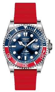 Band Material: Silicone, Band Tone: Red, Band Width: 22MM, Band Length: 210MM, Crown Type: Screw Down, Case Material: Stainless Steel, Case Tone: Steel, Case Size [mm]: 43, Case Back: Solid, Material of Hands: Metal, Color of Hands: Silver, Crystal Type: Flame Fusion, Bezel Material: Stainless Steel,Aluminum, Dial Material: Metal, Dial Color: Blue .Purchasing these parts and having a non-authorized repair center open your watch voids all manufacturing warranties. Invicta cannot guarantee the quality standards of an altered timepiece, the standard 3-year limited warranty on Invicta timepieces shall be invalid if the timepiece is serviced at any time by an unauthorized repair center. This includes battery replacements, which must be done at an Invicta authorized repair center in order to maintain the eligibility of the warranty. Please follow the link below to learn more about Invicta's warranty.https://cdn.invictawatch.com/www/files/invicta-warranty-2018.pdf
