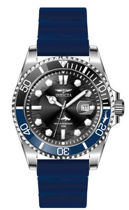 Band Material: Silicone, Band Tone: Blue, Band Width: 22MM, Band Length: 210MM, Crown Type: Screw Down, Case Material: Stainless Steel, Case Tone: Steel, Case Size [mm]: 43, Case Back: Solid, Material of Hands: Metal, Color of Hands: Silver, Crystal Type: Flame Fusion, Bezel Material: Stainless Steel,Aluminum, Dial Material: Metal, Dial Color: Black .Purchasing these parts and having a non-authorized repair center open your watch voids all manufacturing warranties. Invicta cannot guarantee the quality standards of an altered timepiece, the standard 3-year limited warranty on Invicta timepieces shall be invalid if the timepiece is serviced at any time by an unauthorized repair center. This includes battery replacements, which must be done at an Invicta authorized repair center in order to maintain the eligibility of the warranty. Please follow the link below to learn more about Invicta's warranty.https://cdn.invictawatch.com/www/files/invicta-warranty-2018.pdf