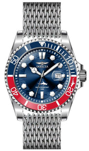 Band Material: Mesh, Band Tone: Steel, Band Width: 22MM, Band Length: 210MM, Crown Type: Screw Down, Case Material: Stainless Steel, Case Tone: Steel, Case Size [mm]: 43, Case Back: Solid, Material of Hands: Metal, Color of Hands: Silver, Crystal Type: Flame Fusion, Bezel Material: Stainless Steel,Aluminum, Dial Material: Metal, Dial Color: Blue .Purchasing these parts and having a non-authorized repair center open your watch voids all manufacturing warranties. Invicta cannot guarantee the quality standards of an altered timepiece, the standard 3-year limited warranty on Invicta timepieces shall be invalid if the timepiece is serviced at any time by an unauthorized repair center. This includes battery replacements, which must be done at an Invicta authorized repair center in order to maintain the eligibility of the warranty. Please follow the link below to learn more about Invicta's warranty.https://cdn.invictawatch.com/www/files/invicta-warranty-2018.pdf