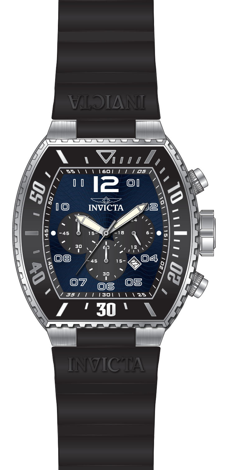 Band Material: Silicone, Band Tone: Black, Band Width: 29.8MM, Band Length: 200MM, Crown Type: Push, Case Material: Stainless Steel,Aluminum, Case Tone: Black,Silver,Steel, Case Size [mm]: 51.00, Case Back: Solid screwed, Material of Hands: Metal, Color of Hands: Luminous,Steel, Crystal Type: Mineral, Bezel Material: Stainless Steel,Aluminum, Dial Material: Metal, Dial Color: Black,Blue, Dial Pattern: Sun-ray Finish .Purchasing these parts and having a non-authorized repair center open your watch voids all manufacturing warranties. Invicta cannot guarantee the quality standards of an altered timepiece, the standard 3-year limited warranty on Invicta timepieces shall be invalid if the timepiece is serviced at any time by an unauthorized repair center. This includes battery replacements, which must be done at an Invicta authorized repair center in order to maintain the eligibility of the warranty. Please follow the link below to learn more about Invicta's warranty.https://cdn.invictawatch.com/www/files/invicta-warranty-2018.pdf